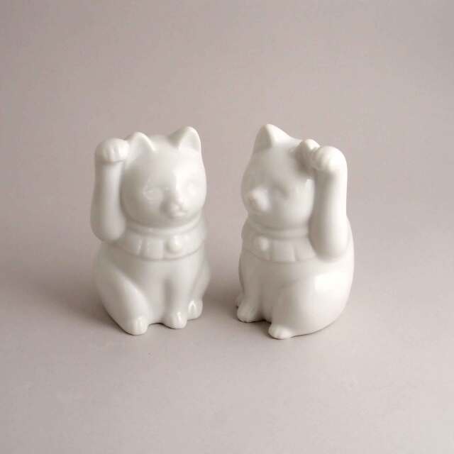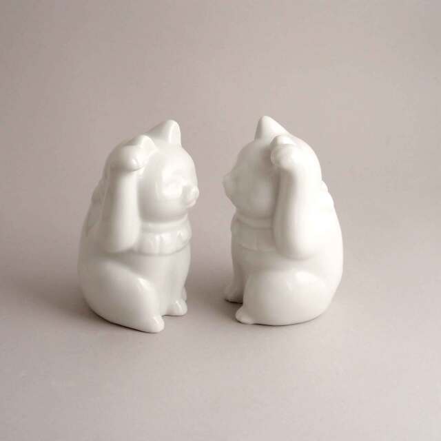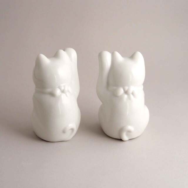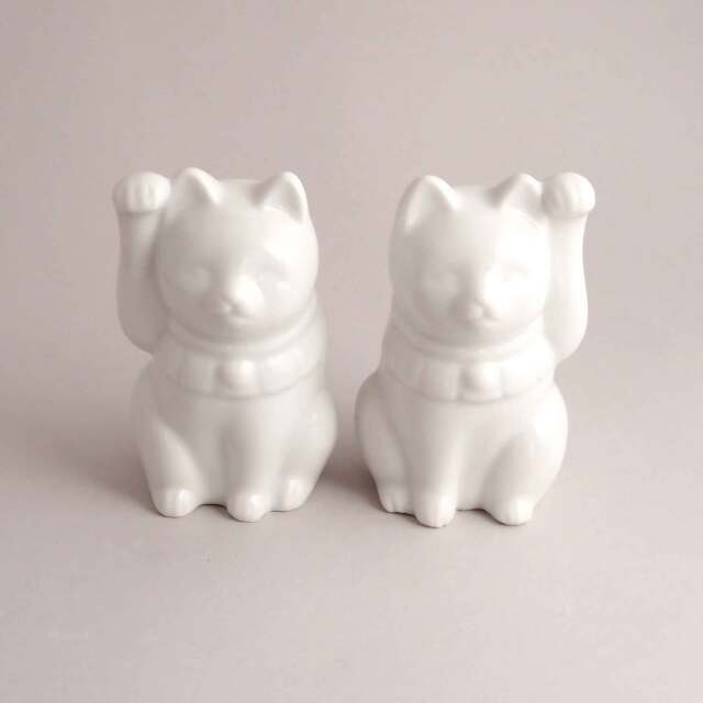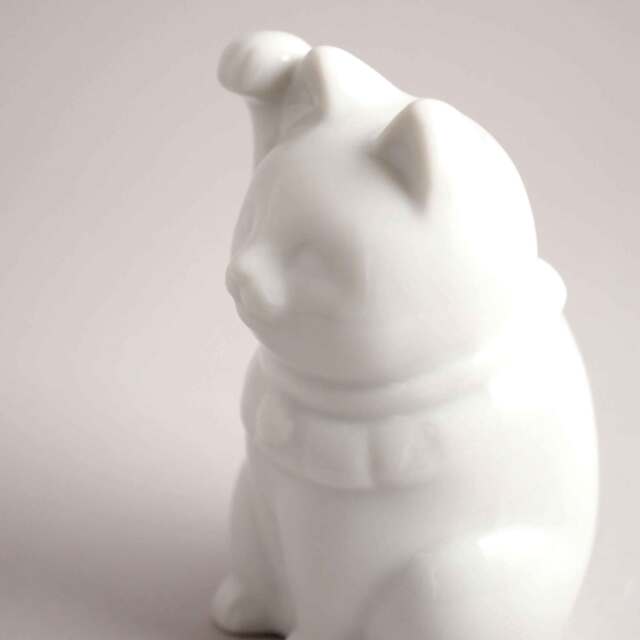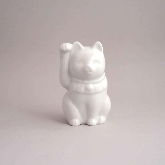 真っ白な姿が愛らしい、手のひらサイズの招き猫です。